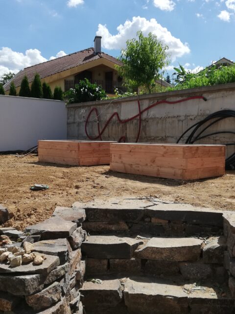 Pri našich návrhoch sa snažíme do záhrad takmer vždy, keď je to aspoň trochu možné, zakomponovať aj vyvýšené záhony. Nezáleží vôbec natom, či komponujeme modernú záhradu, alebo záhradu vo vidieckom štýle. Aj malý priestor, kde si môžete dopestovať kúsok svojej zeleniny, alebo ovocia určite poteší každého. Vďaka vyvýšeným záhonom dokážeme výrazne zredukovať burinu a tak isto sú výbornou voľbou pre pozemky, kde je neúrodná alebo iným spôsobom nekvalitná pôda. No a samozrejme neodmysliteľným benefitom je aj to, že sa nemusíte zohýbať pri práci a ide taktiež o dizajnový prvok v záhrade. Pri naších vyvýšených záhonoch používame kvalitné 5 centimetrov hrubé dosky z DUBU alebo z ČERVENÉHO SMREKU. Obidve dreviny sa vyznačujú vysokou trvácnosťou a dlhovekosťou. Samozrejmosťou každého záhonu je nopová fólia vo vnútri, ktorá zvyšuje odolnosť a zabraňuje prenikaniu vlhkosti do dreva a taktiež v prípade záujmu aj náter kvalitnou čírou, alebo farebnou olejovou lazúrou. Veľký počet záhonov, ale ponechávame bez náteru, kde počas krátkej doby drevo prirodzene zošedne a tým získa krásnu patinu.